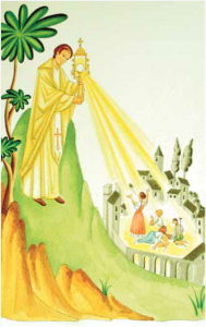 La première apparition de l’Enfant Jésus dans le Saint-Sacrement eut lieu le 2 juin 1649 pendant les Vêpres et l’exposition solennelle de la Fête-Dieu.
