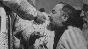Frère Kostka : « Le terme « divinisation » décrit au mieux l’effet intérieur et suréminent de la sainte Communion. Tout comme une goutte d’eau se précipite dans la mer et s’y fond, de même le chrétien qui communie, et en particulier le prêtre célébrant, est conduit vers Dieu et uni à Lui, il est même divinisé. Cette divinisation est réalisée directement par la Très Sainte Trinité. J’ai souvent vu, avec l’œil spirituel intérieur, dans l’âme du communiant, un mouvement merveilleux de toute la Sainte Trinité. Ce mouvement est un don de la divinité et l’établissement de la communion spirituelle des biens, comme l’indique déjà le sens même du mot. Car « communion » signifie union, devenir un avec Dieu.